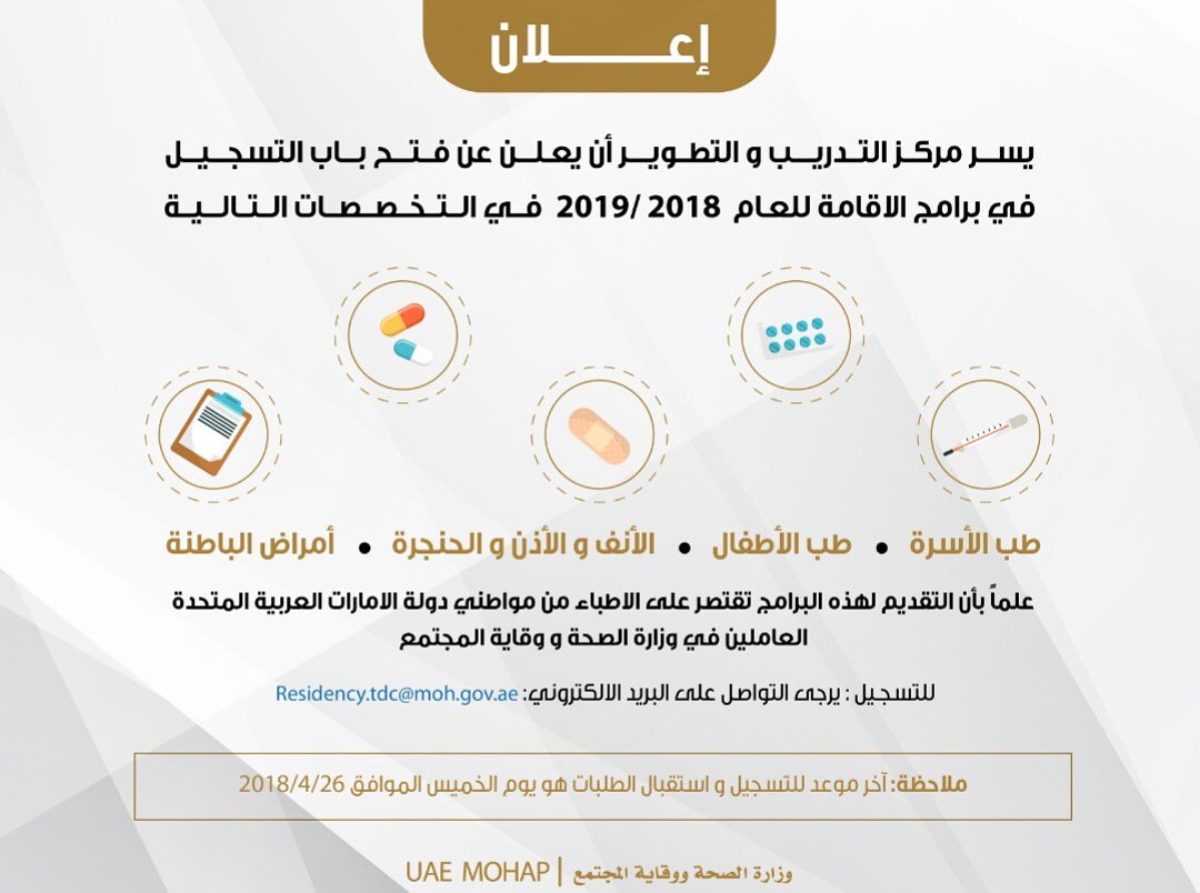 O Xrhsths وزارة الصحة ووقاية المجتمع الإماراتية Mohap Uae Sto Twitter للتسجيل يرجى التواصل على البريد الإلكتروني التالي Residency Tdc Moh Gov Ae
