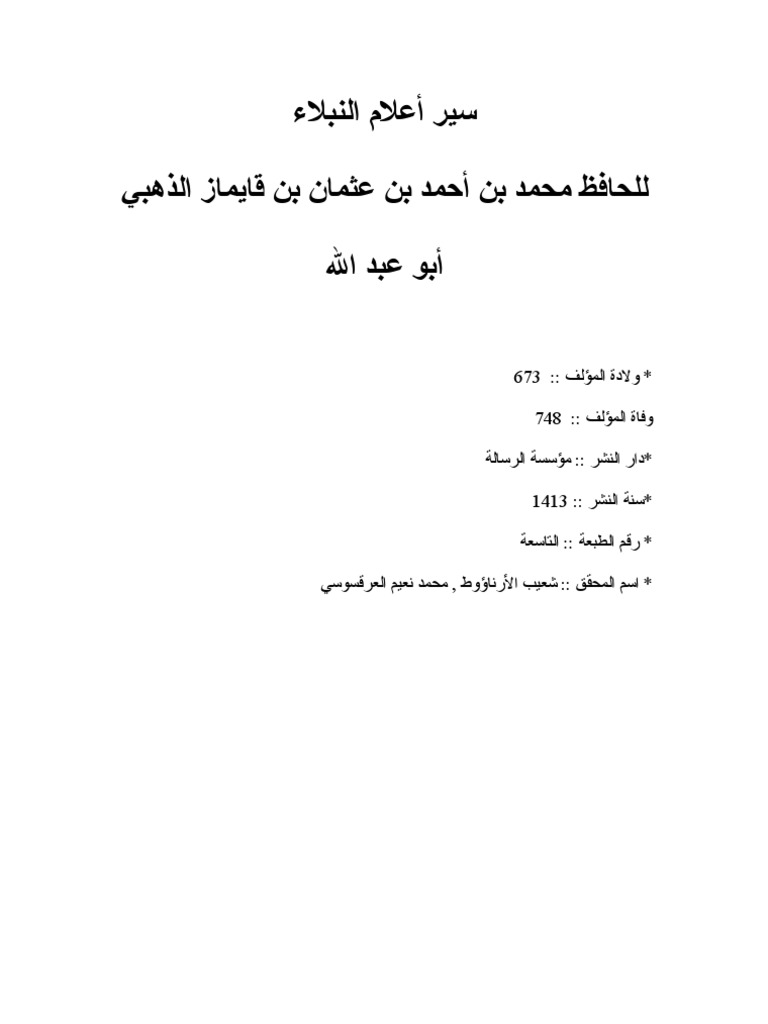 Alkitab Com Your Source For Arabic Books Siyar A Lam Al Nubala
