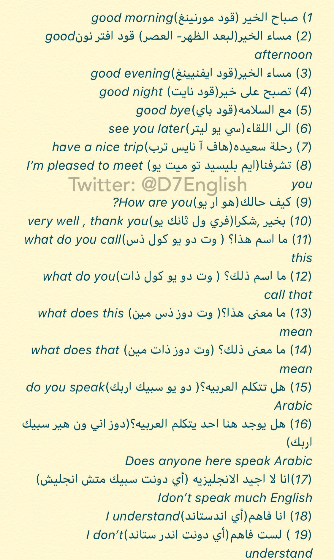 تعلم الإنجليزية 1m On Twitter جميع التحايا بااللغة