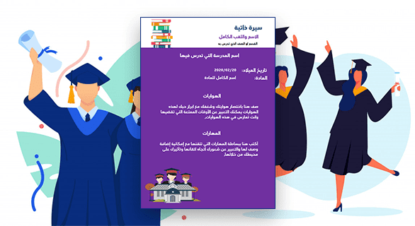 السيرة الذاتية للمعلمة في ملف الانجاز على كيفك