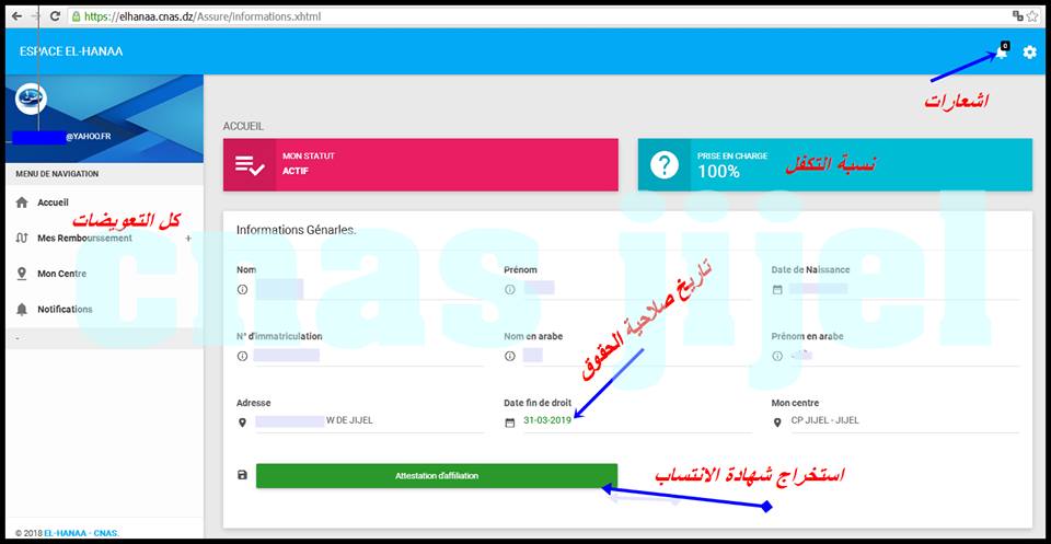 التسجيل على فضاء هناء للاطلاع على ملف الضمان الاجتماعي Hana Cnas