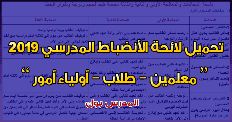 تحميل لائحة الأنضباط المدرسي 2019 اعرف عقاب الطالب او المعلم حال