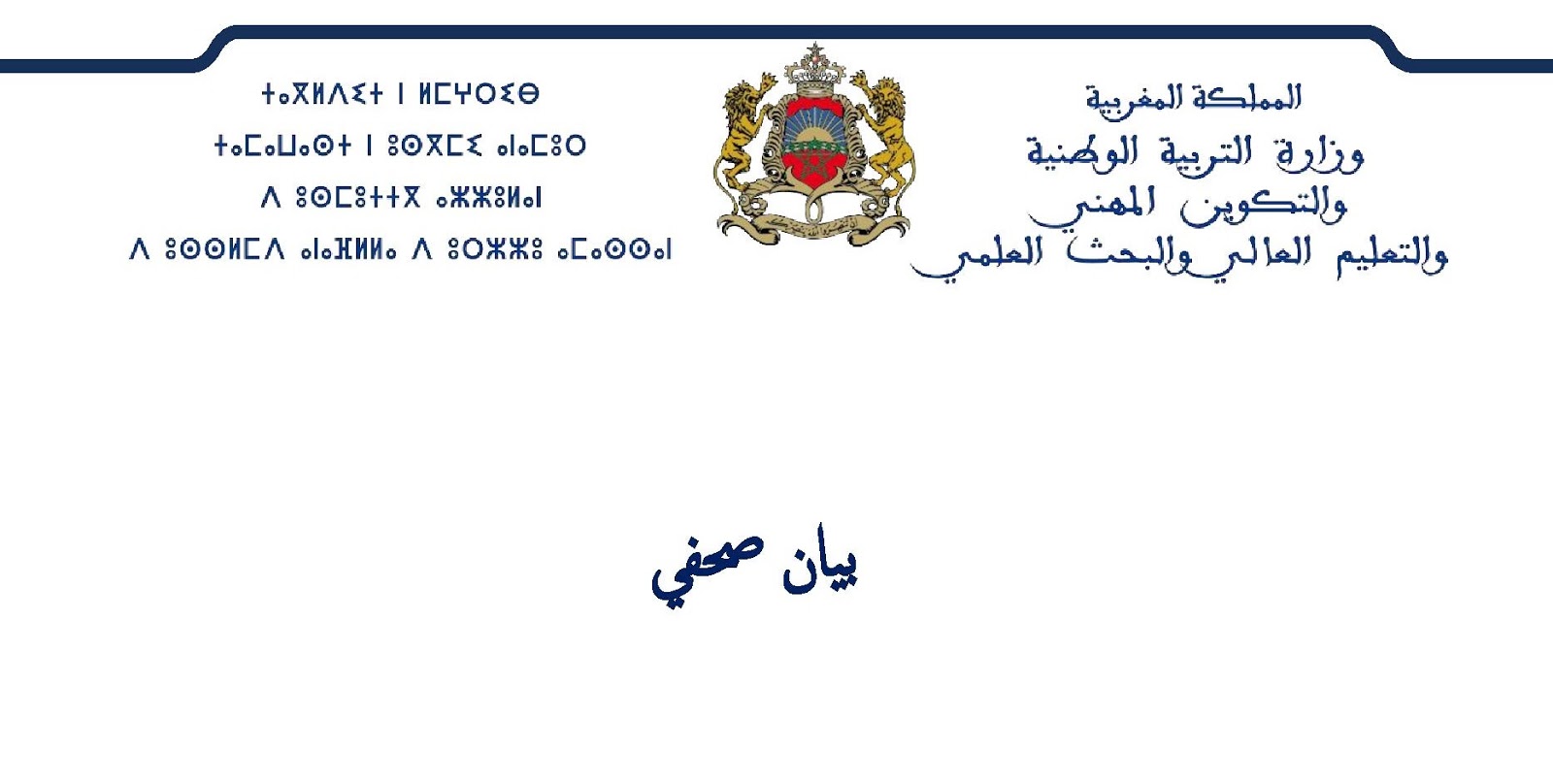 بلاغ وزارة التربية الوطنية والتكوين المهني والتعليم العالي والبحث