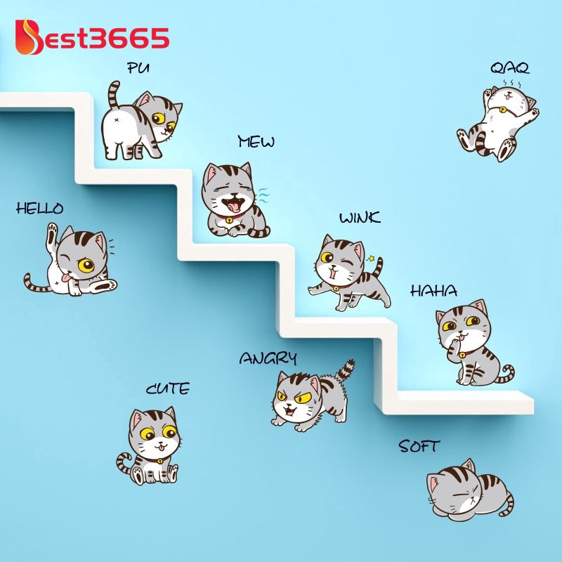 Stiker Dinding Desain Kartun Kucing Lucu Bahan Pvc Untuk Kamar