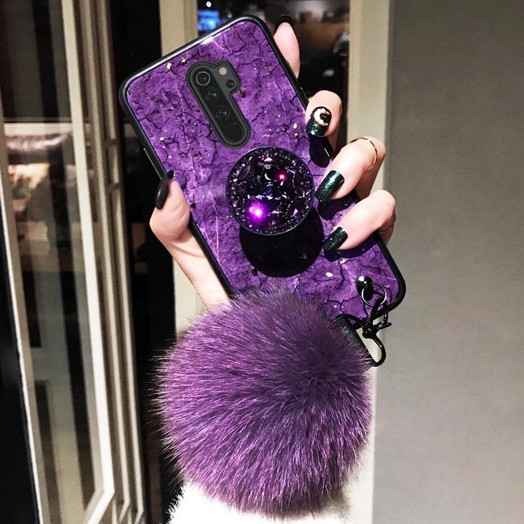 Casing Motif Marmer Dengan Bola Bulu Untuk Hp Oppo Reno 2f 2 2z