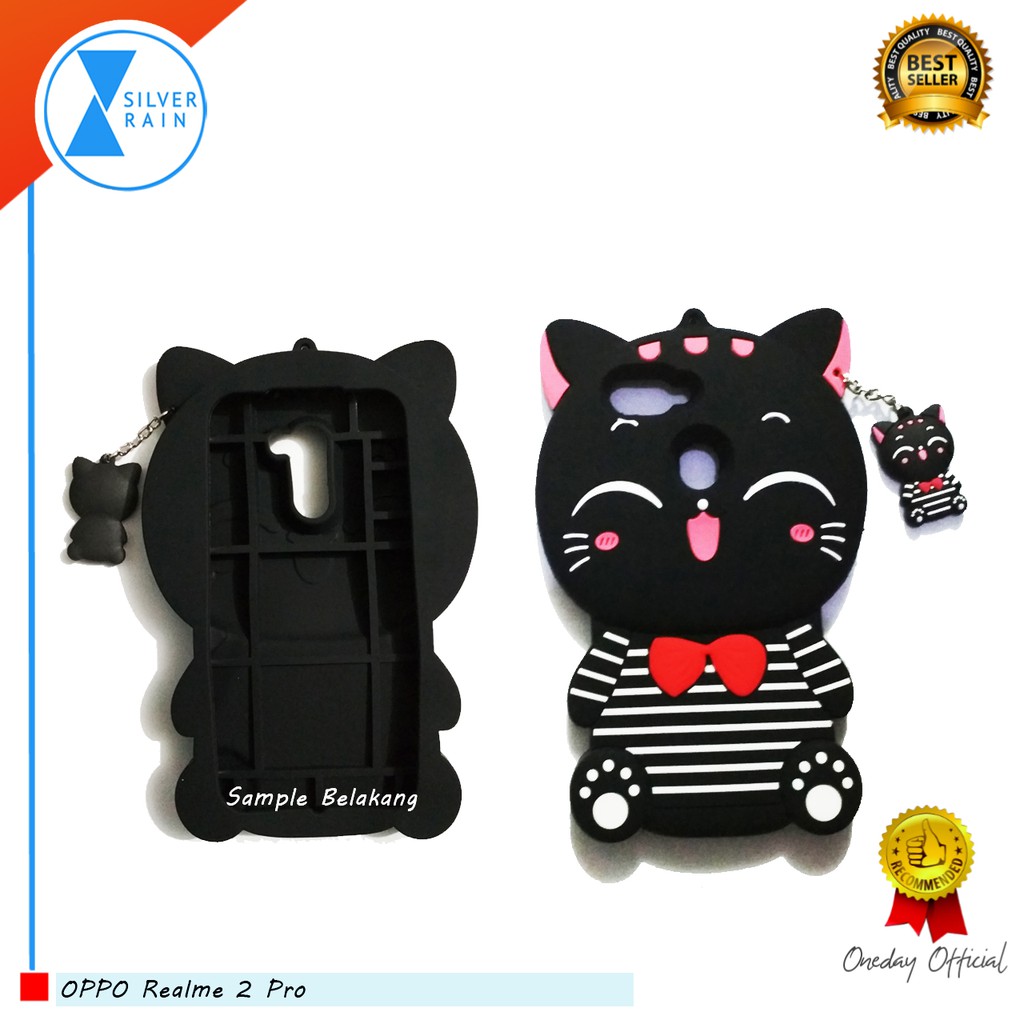 Lucu Case 4d Oppo Realme 2 Pro Black Miauw Hardcase Lembut