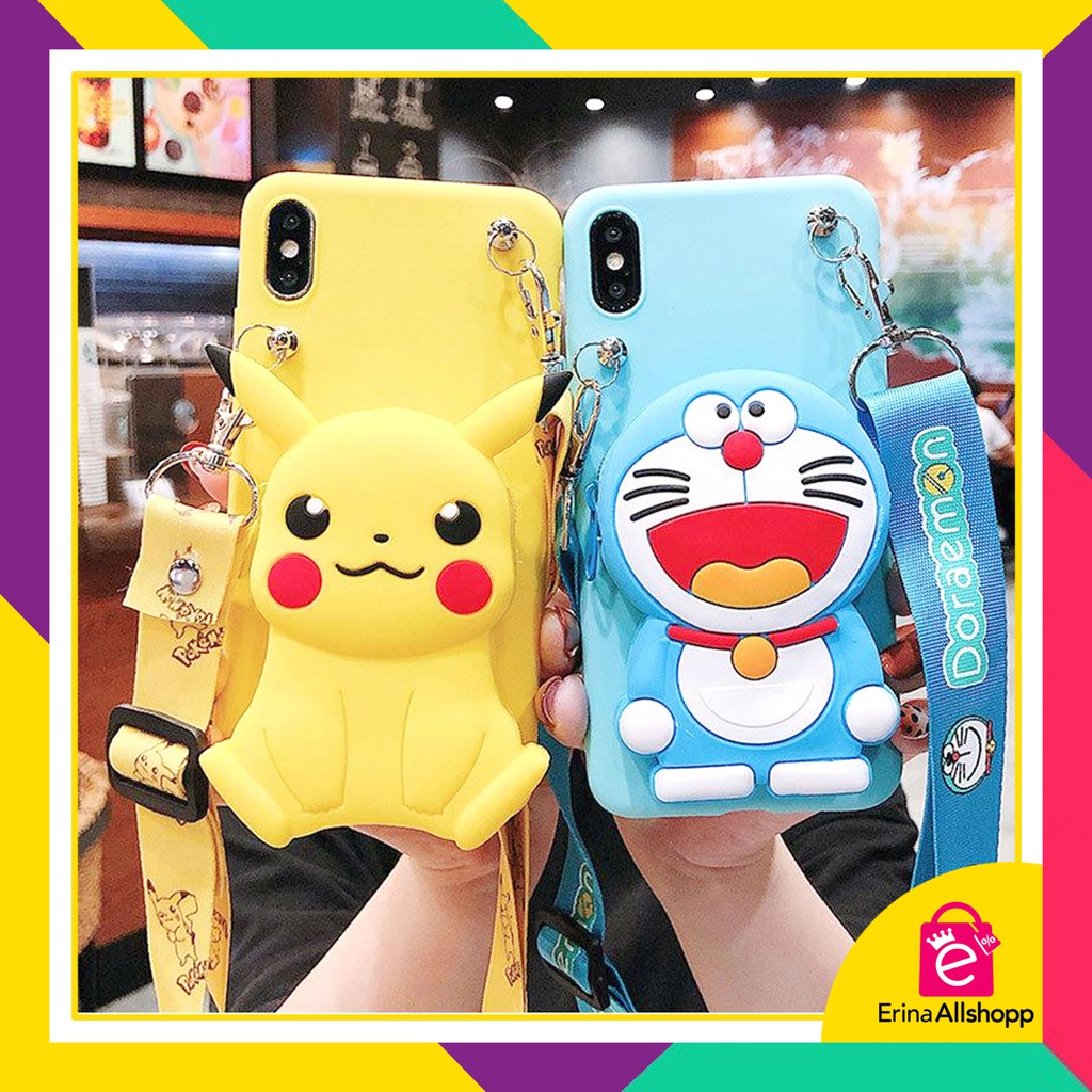 Realme 5 Softcase Dompet Lucu Doraemon Mickey Mouse 4d Tali