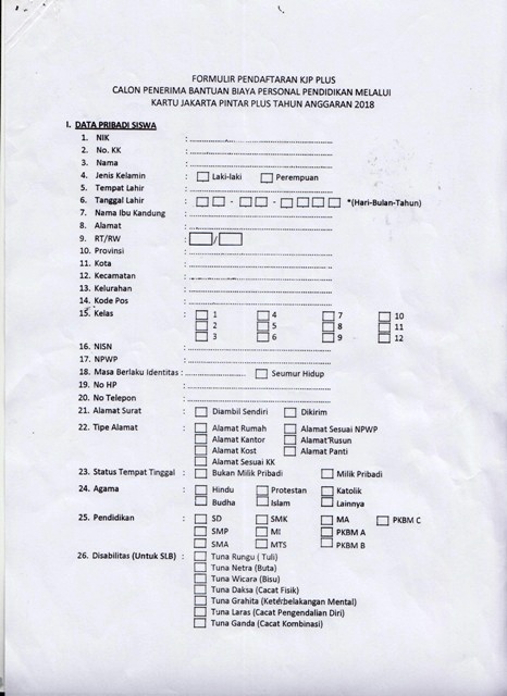 Formulir Pendaftaran Kjp Plus Calon Penerima Bantuan Biaya
