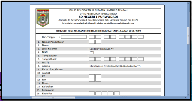 Download Contoh Formulir Ppdb Sd Dan Smp Tahun Pelajaran 2019 2020