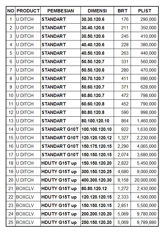 Harga Jual U Ditch Dan Cover U Ditch Murah