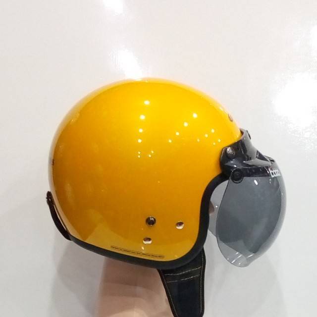 Ds Helm Jpn Bogo Retro Arc Kuning Glossy Kaca Datar Flat Visor
