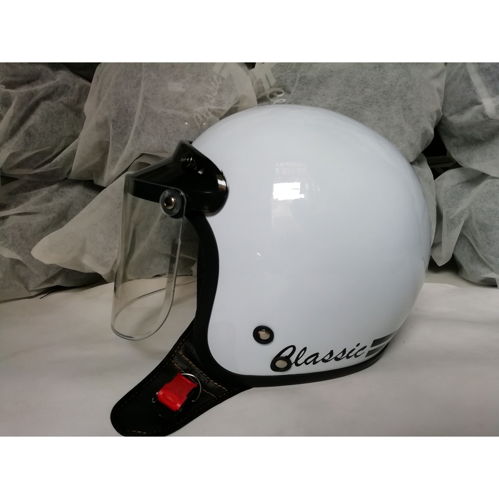 Helm Bogo Classic Dewasa Warna Putih Kaca Datar Bening Shopee