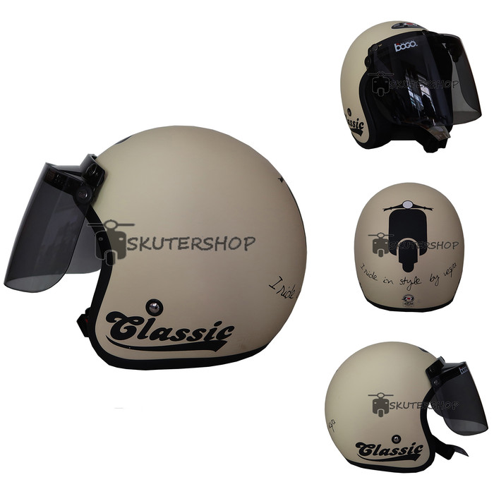 Jual Helm Bogo Retro Jpn Vespa Classic Krem Doff Vespa Hitam Kaca