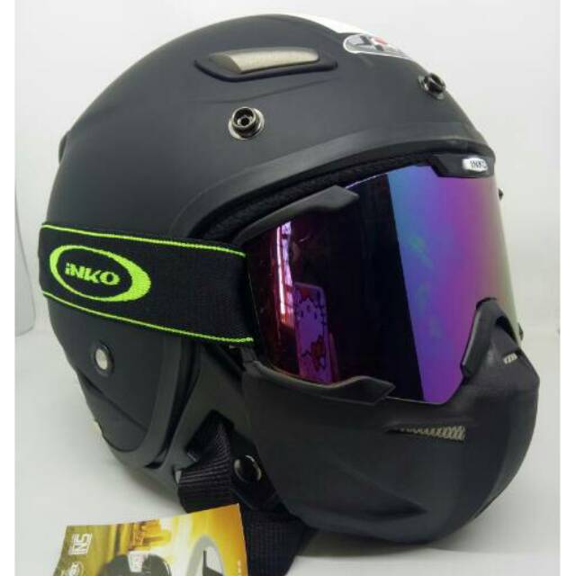 Jual Helm Bogo Retro Sni Jpn Momo Hitam Doff Goggle Mask Griya