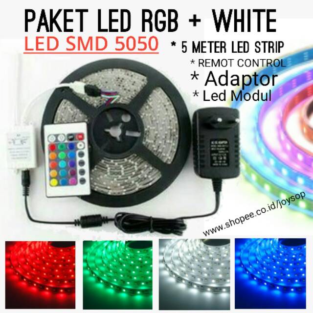 Paket Led Strip 5050 Rgb White Waterproof Shopee Indonesia