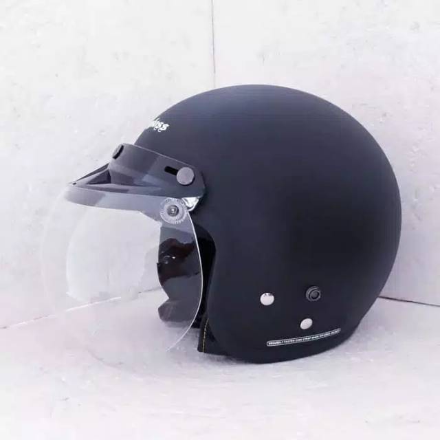 Helm Bogo Retro Kaca Injak Hitam Doff Helm Cargloss Helm Retro Sni
