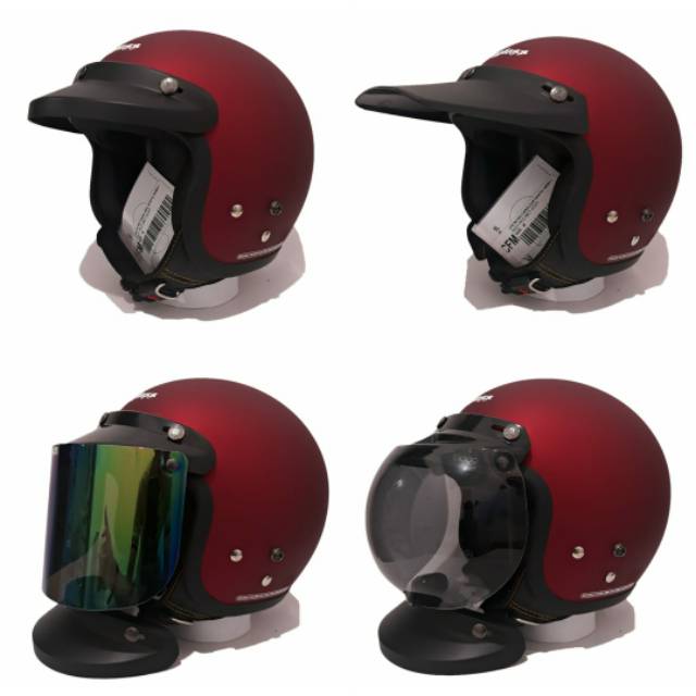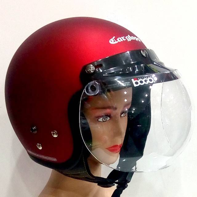 Helm Retro Cargloss Kaca Bogo Maroon Doff Shopee Indonesia