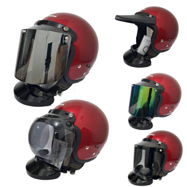 Helm Bogo Retro Kaca Injak Merah Maroon Helm Cargloss Helm Retro