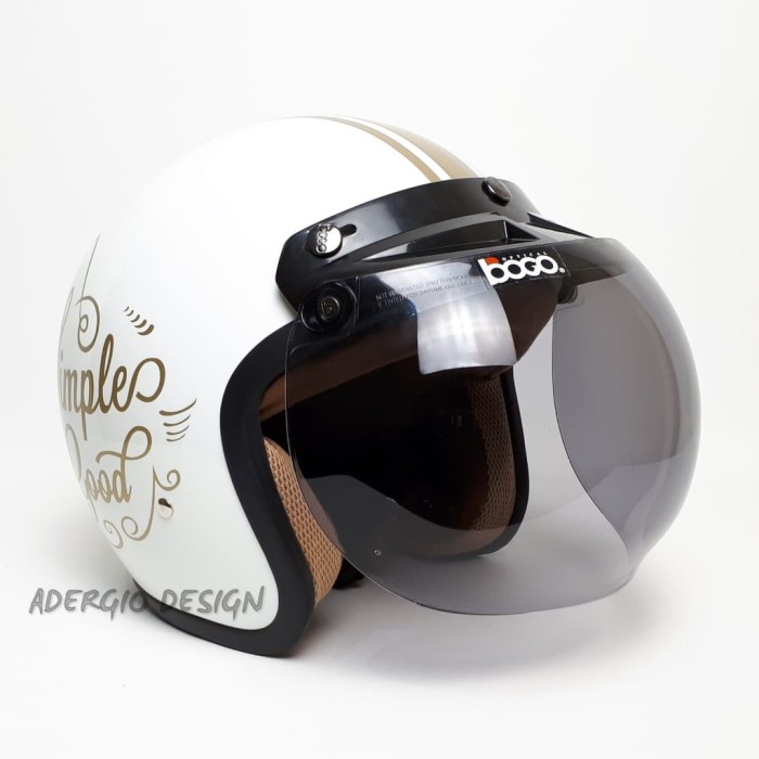 Jual Helm Bogo Motif Simple Is Good Putih Glossy Full Cat Retro