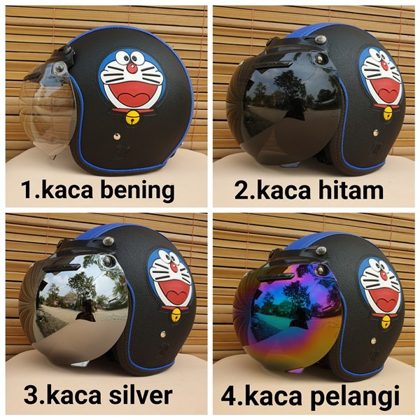 Helm Bogo Retro Sni Doraemon Biru Hitam Kaca Boda Indo Ori