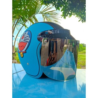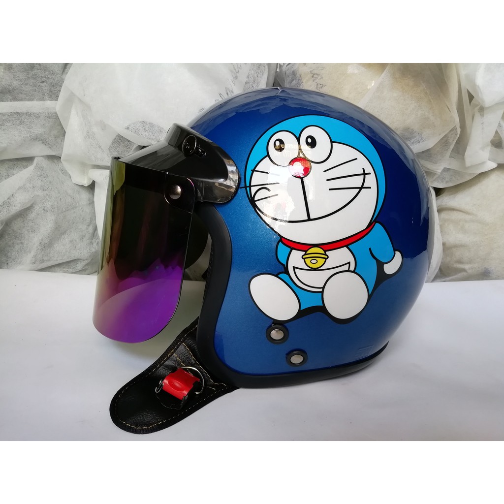 Helm Bogo Clasik Retro Kulit Dewasa Karakter Doraemon Kaca Flat