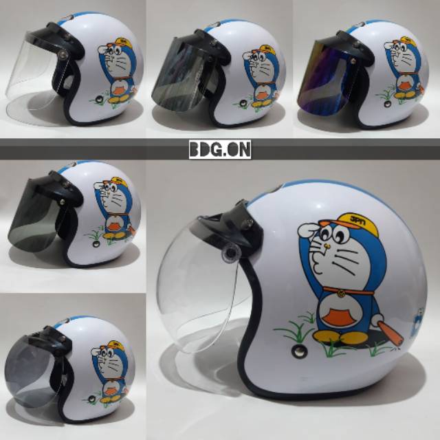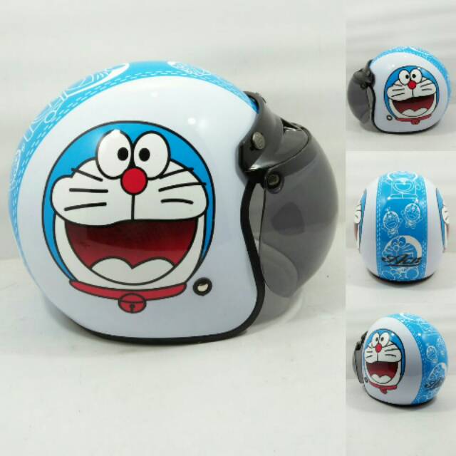 Helm Bogo Classic Jm Motif Doraemon Biru Putih Shopee Indonesia