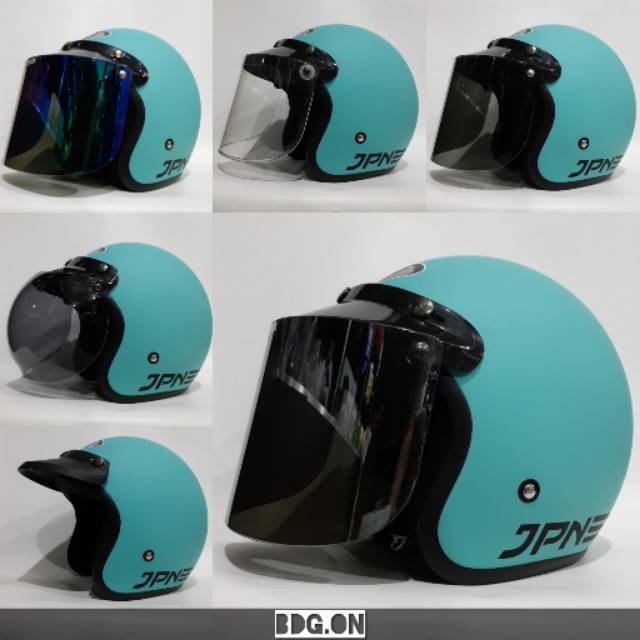 Helm Bogo Retro Jpn Biru Tosca Doff Bebas Pilih Kaca Cembung