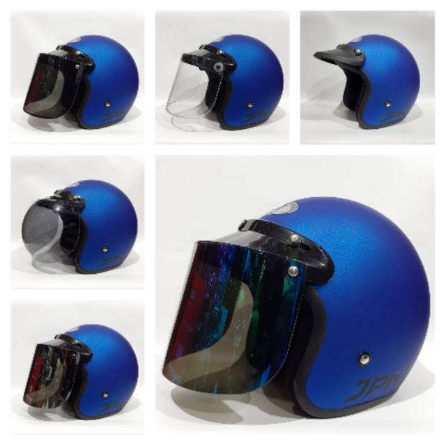 Helm Bogo Jpn Retro Klasik Warna Biru Tua Doff Shopee Indonesia