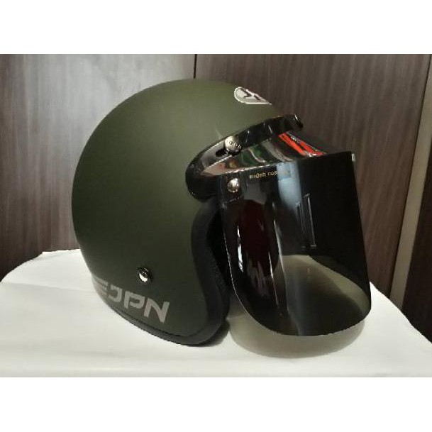 Jual Helm Bogo Retro Jpn Arc Hijau Army Doff Kaca Visor Flat Datar