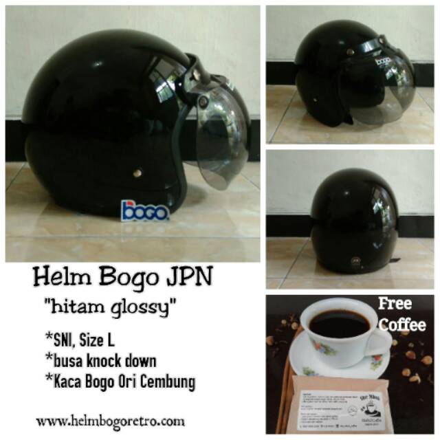 Jual Helm Bogo Retro Jpn Arc Hitam Glossy Kaca Flat Datar Clear