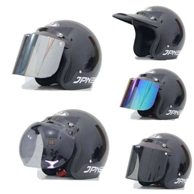 Helm Jpn Hitam Black Glossy Helmet Motor Bogo Retro Polos Pria