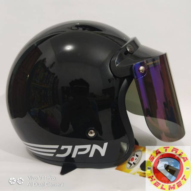 Helm Bogo Jpn Retro Klasik Hitam Glossy Jpn Retro Original Full
