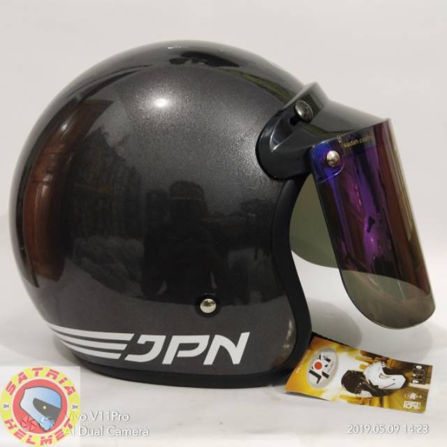 Helm Bogo Jpn Retro Bogo Original Warna Gun Metal Glossy Bebas