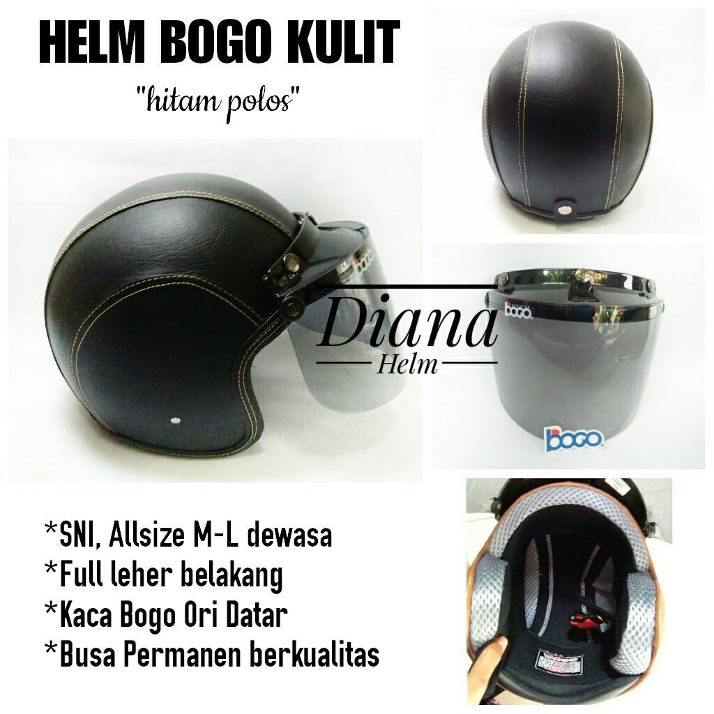 Helm Bogo Sni Hitam Doff Polos Kaca Datar Bogo Original Shopee