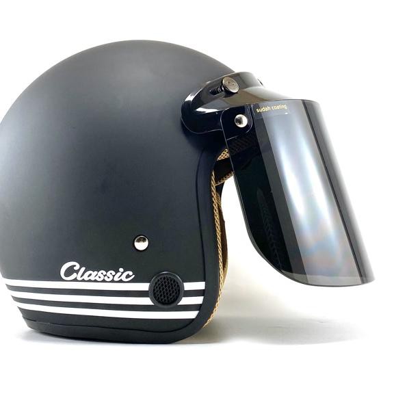Helm Bogo Jpn Retro Klasik Hitam Doff Polos With Kaca Bogo Datar