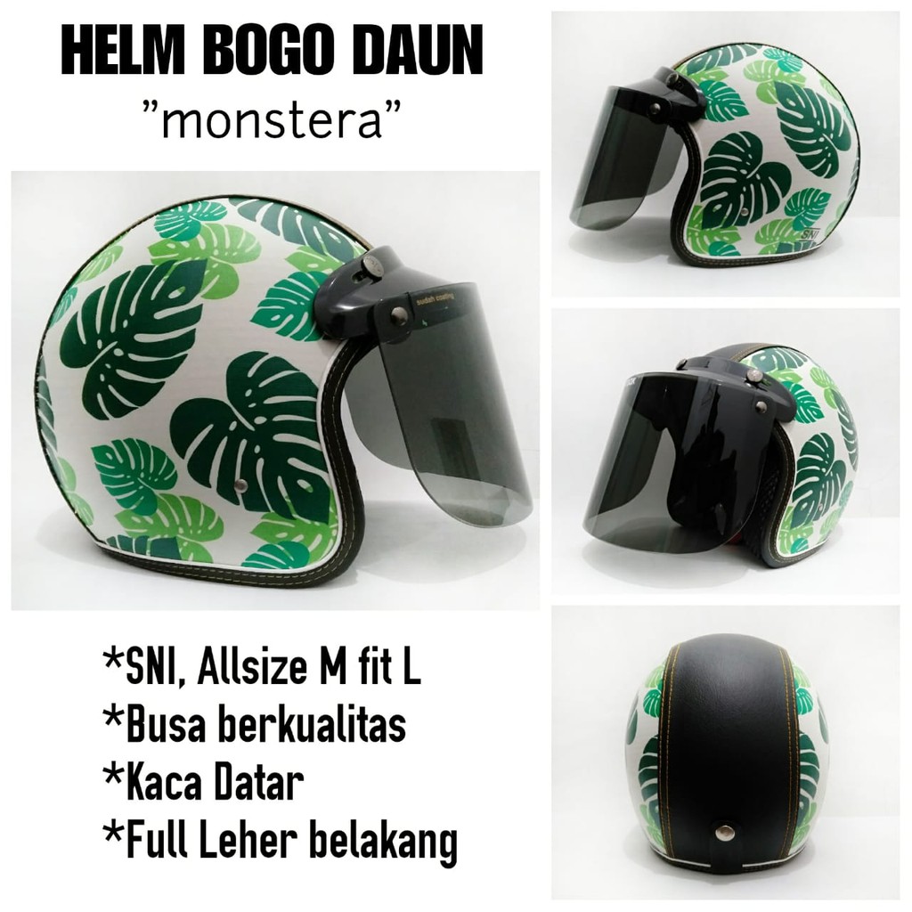 Terlaris Helm Bogo Full Print Motif Daun Monstera Kaca Datar
