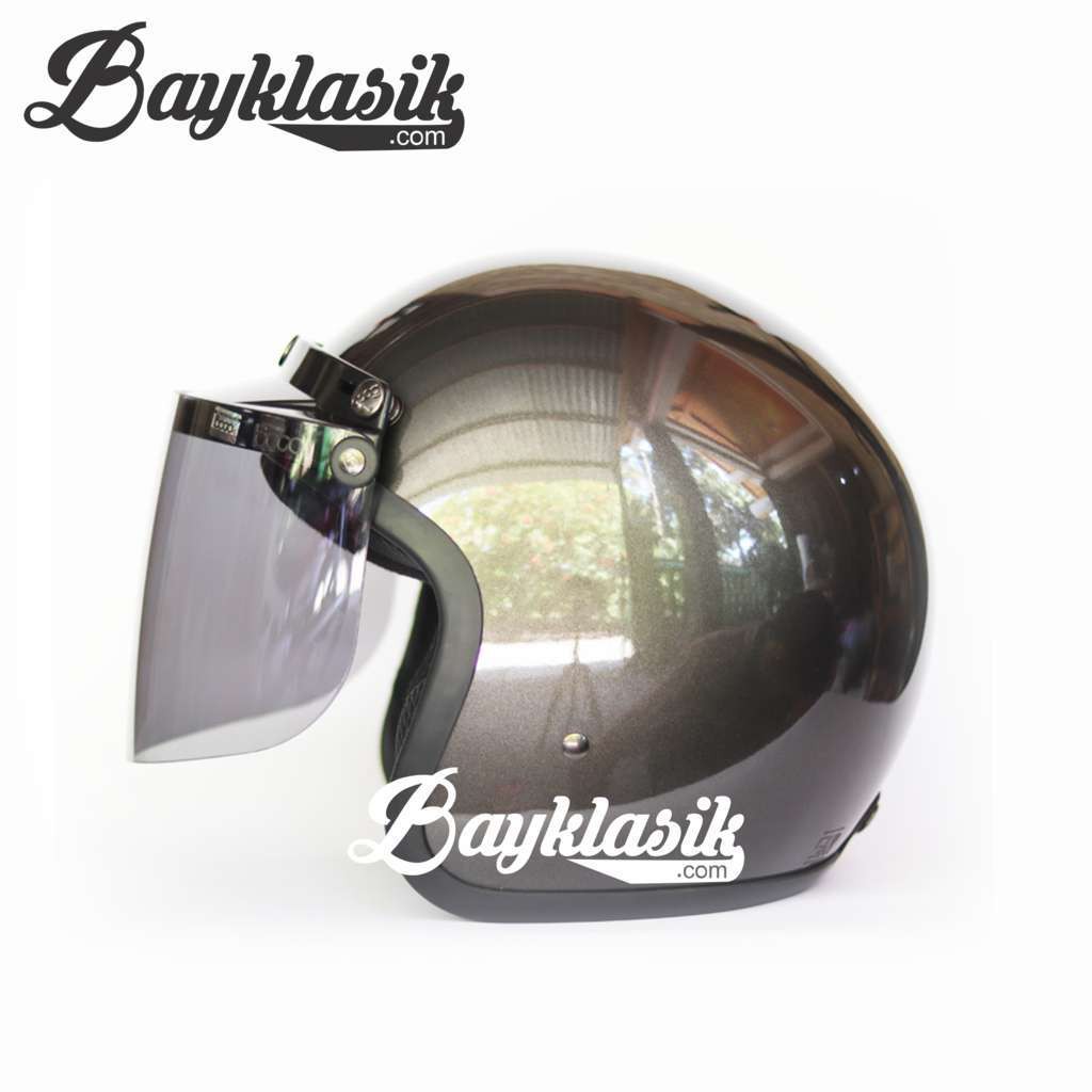Helm Bogo Kaca Lurus Jpn Arc Hitam Metalik Retro Klasik Di Lapak