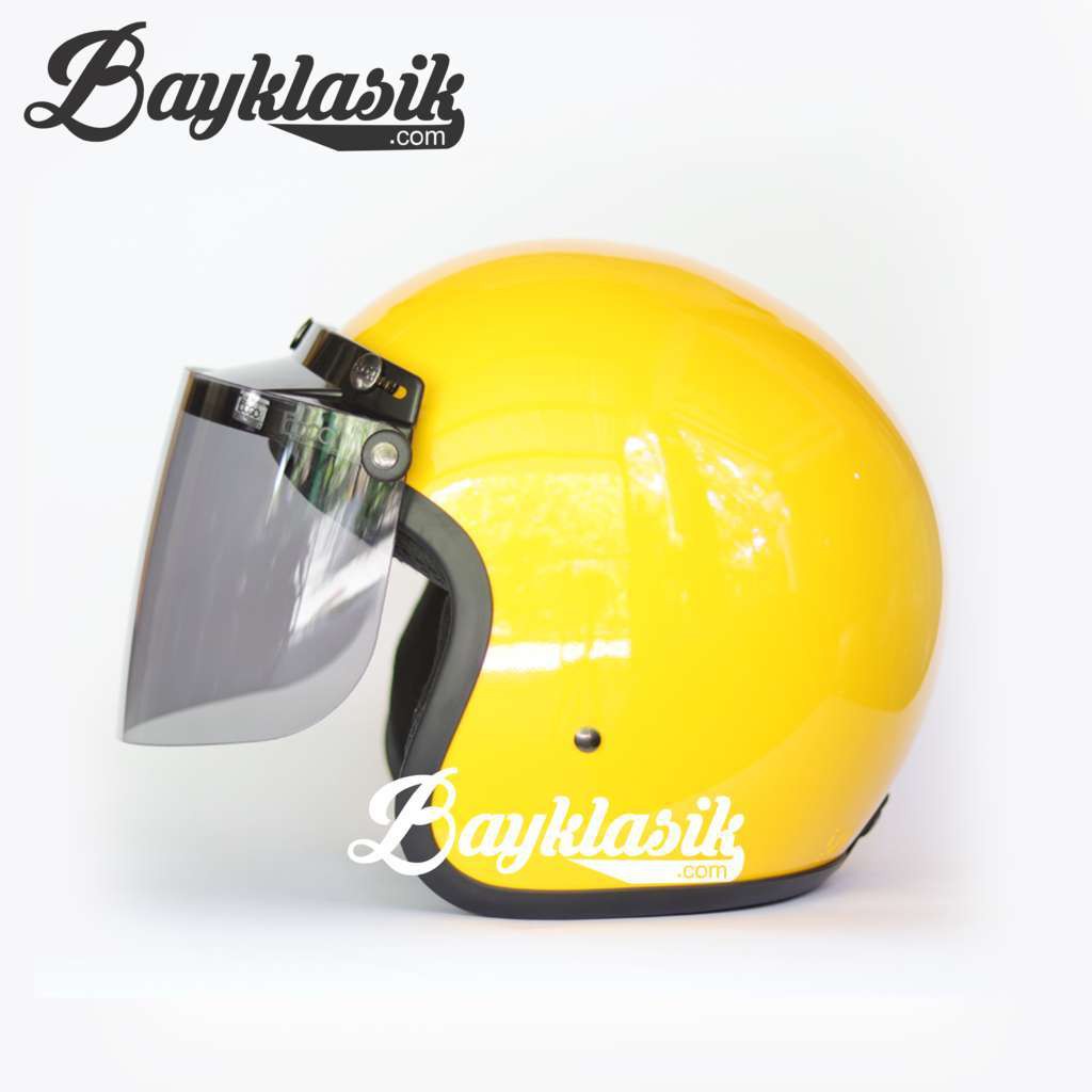 Helm Bogo Retro Dewasa Cat Polos Warna Kuning Glossy Dengan Kaca Datar Silver Lazada Indonesia