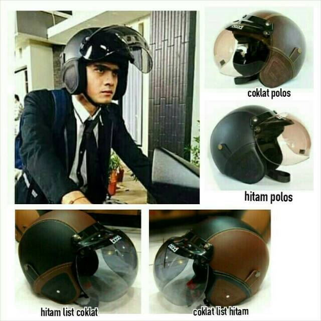 Bisa Bayar Ditempat Helm Bogo Retro Kulit Classic Keren Kaca