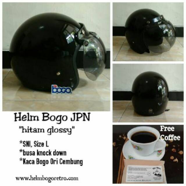 Jual Helm Bogo Retro Kaca Bogo Hitam Polos Standar Sni Bukan
