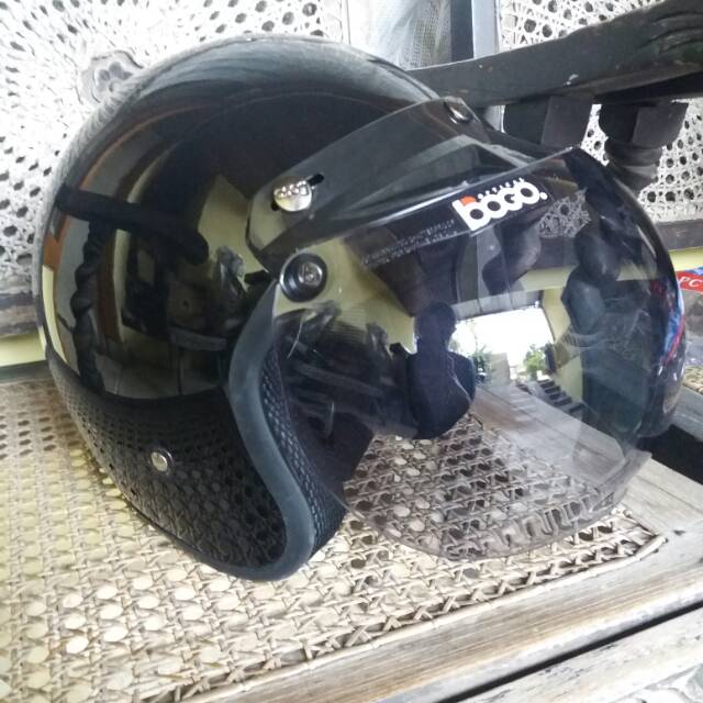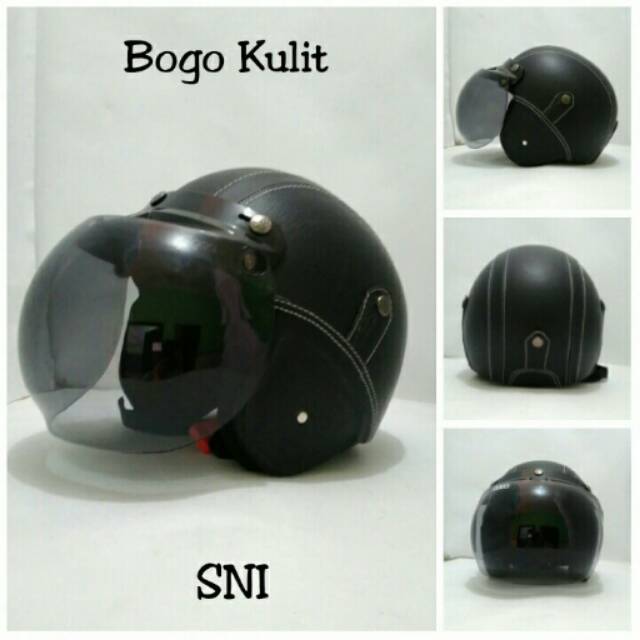 Helm Bogo Retro Sni Kulit Hitam Polos Kaca Bogo Ori Shopee