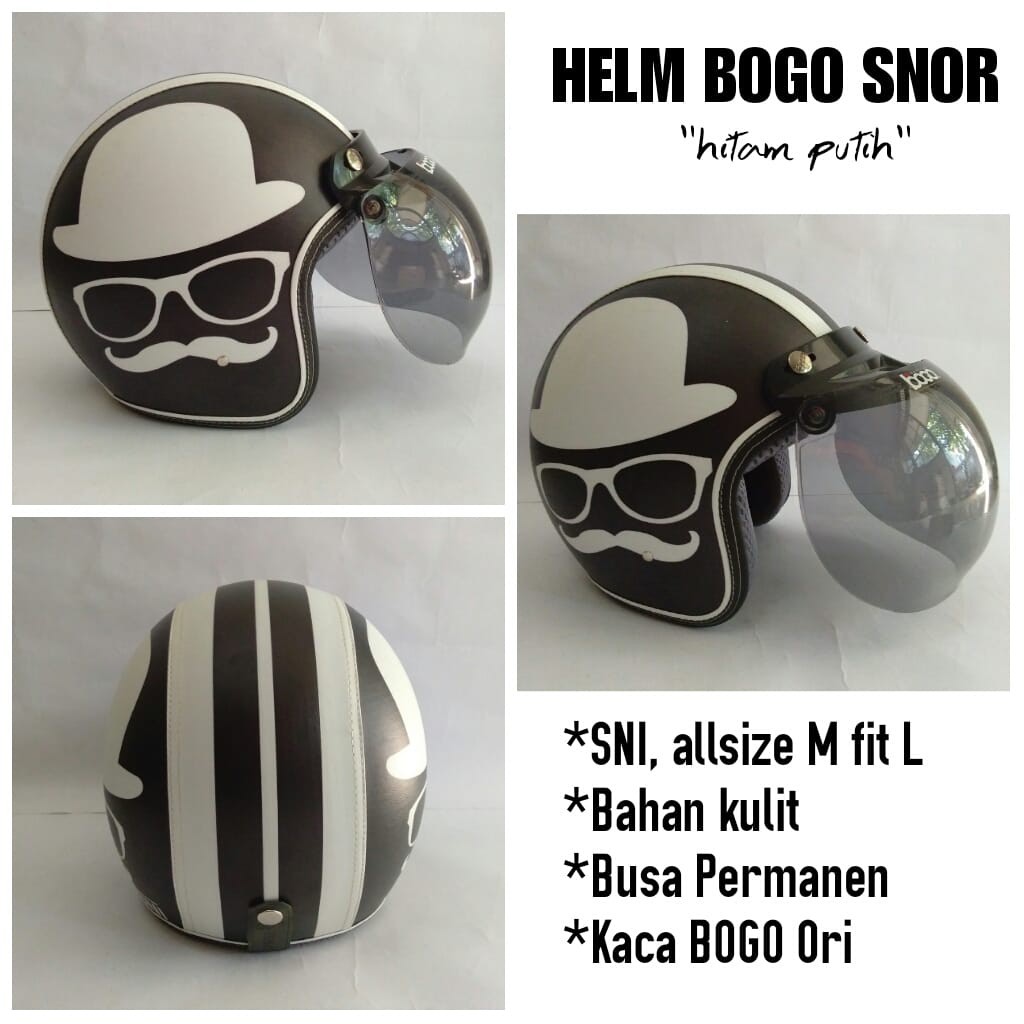 Jual Helm Bogo Retro Sni Kulit Hitam Putih Merah Biru Coklat Kaca