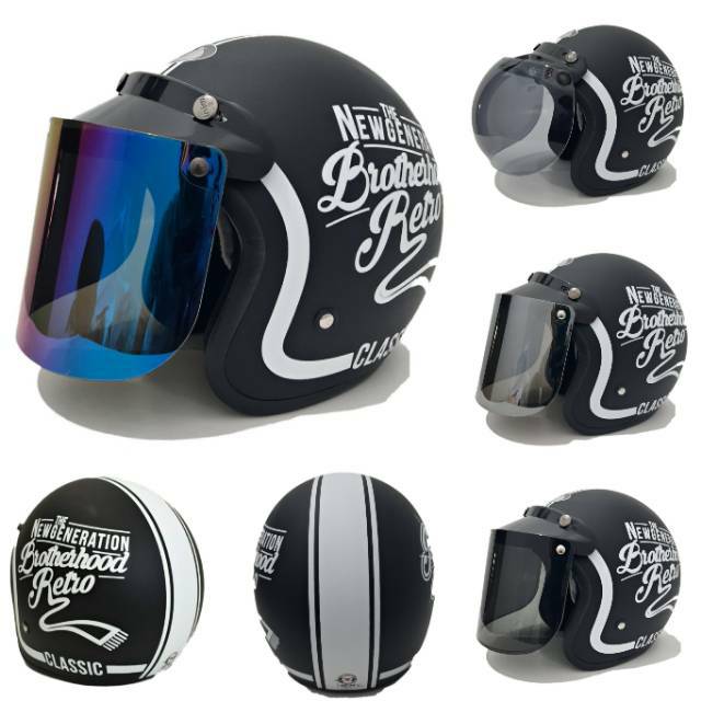 Helm Bogo Jpn Retro Classic Hitam Putih Dof Shopee Indonesia