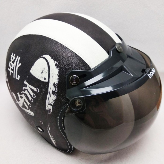 Jual Helm Bogo Retro Kulit Dan Glossy Motif Sepatu Hitam Putih
