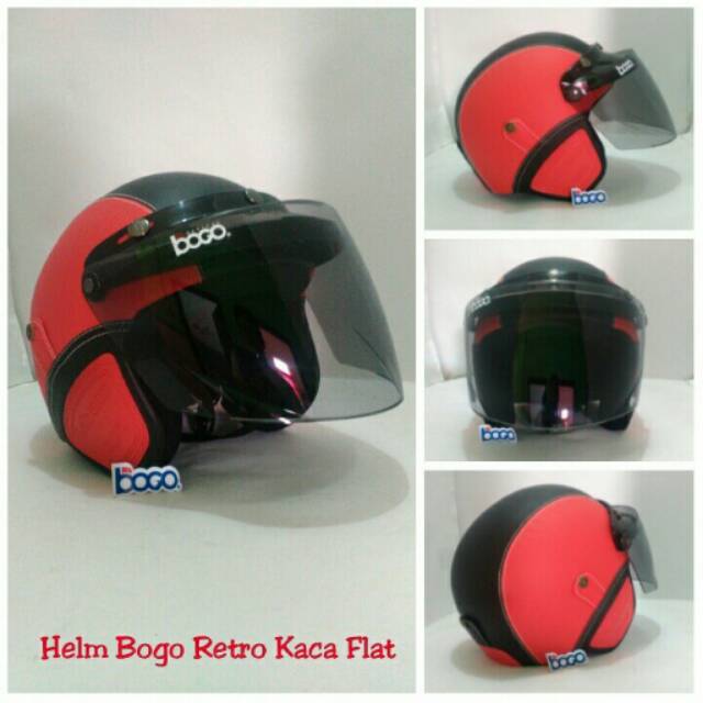Helm Bogo Retro Kulit Classic Merah Hitam Kaca Bogo Flat Shopee