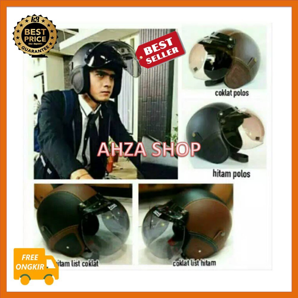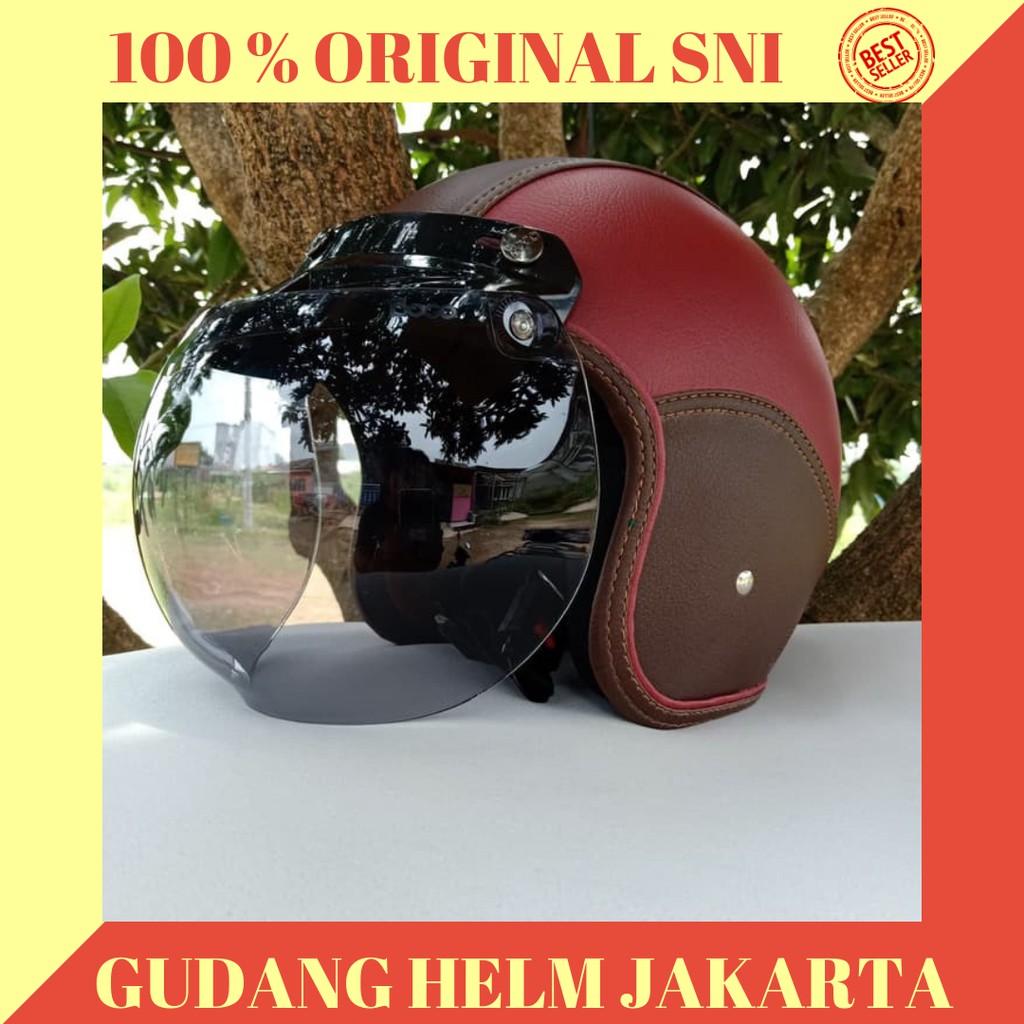 Helm Bogo Retro Full Kulit Sni Dewasa Kaca Kaca Lokal Indo