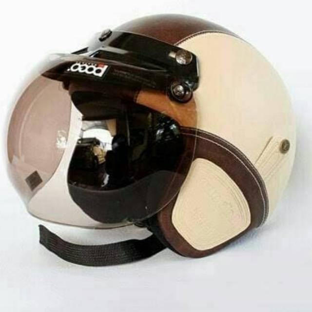 Jual Helm Bogo Retro Kulit Krem Cream Coklat Hitam Greyshade Cek