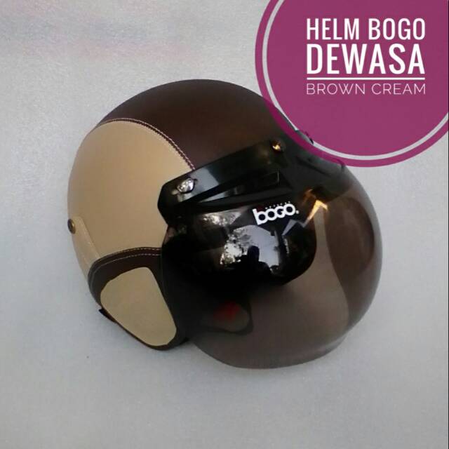 Helm Bogo Kulit Kaca Cembung Sni Coklat Krem Shopee Indonesia