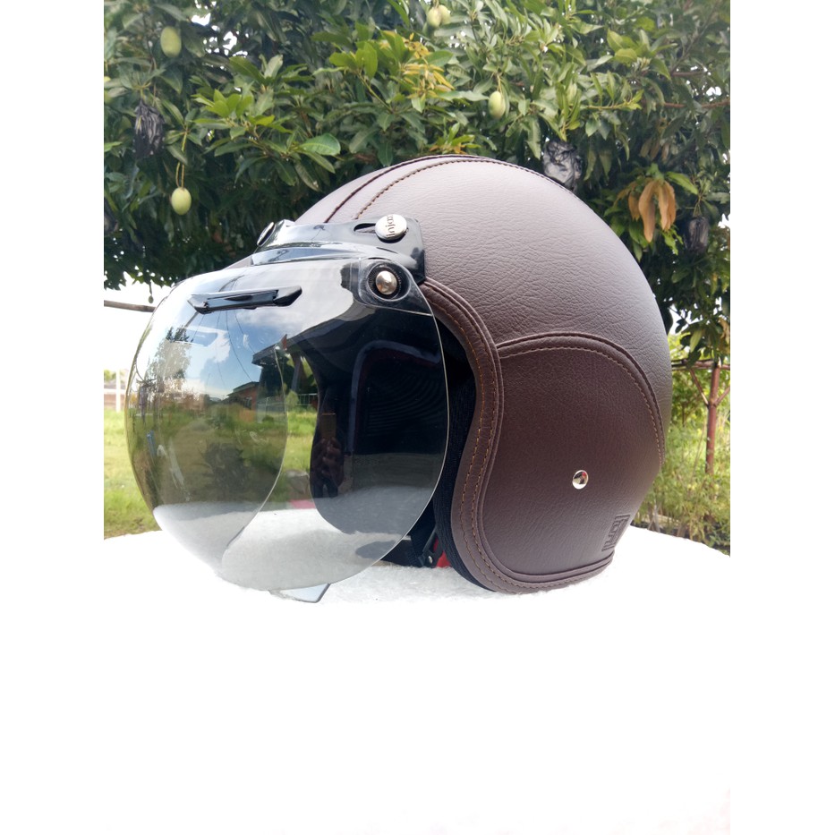 Promo Helm Retro Kulit Dewasa Warna Coklat Berkualitas Shopee