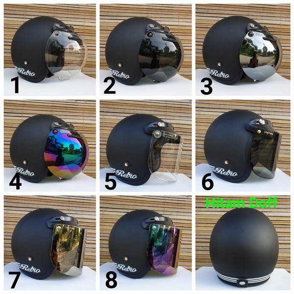 Jual Helm Bogo Retro Warna Hitam Dof Polos Kaca Bogo Original